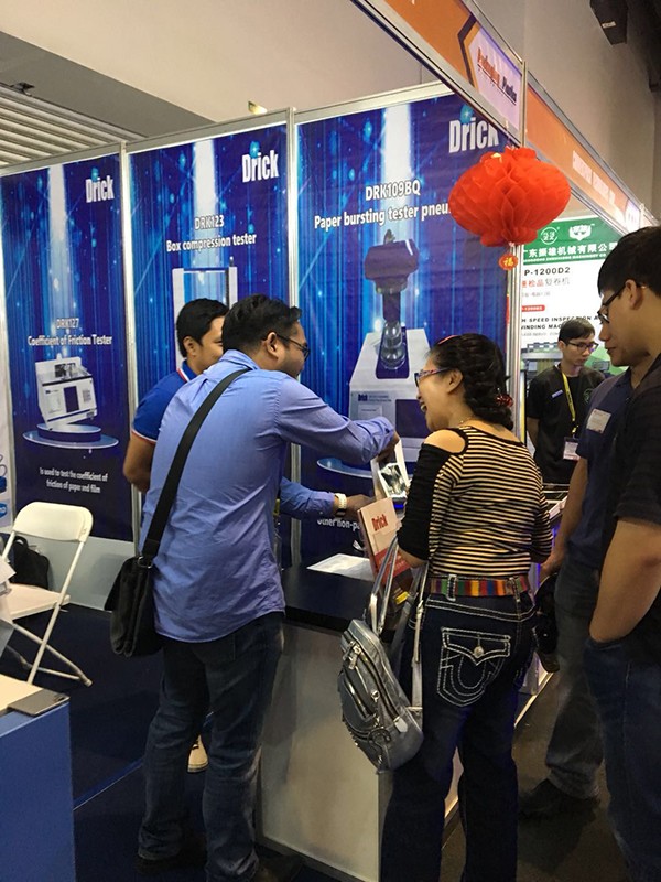 展會(huì )上我們向廣大展商和觀(guān)眾展示了我們的主打產(chǎn)品:DRK127摩擦系數儀、DRK123抗壓機、DRK101萬(wàn)能拉力機、DRK109耐破度儀、DRK113壓縮儀、DRK133熱封儀等。產(chǎn)品的實(shí)用性和性?xún)r(jià)比,吸引了一波又一波的參觀(guān)人員駐足了解。